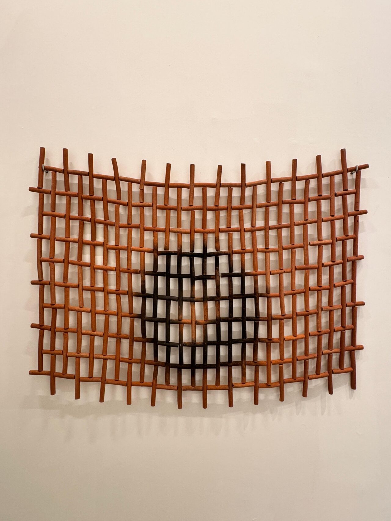The weaving is constructed like architecture, and at the same time, it is, as always, a skin. This time, the skin of something that doesn’t yet have a skeleton. Perhaps a home, perhaps a being to imagine. They could be a shell, a carapace, an armor, a skin.