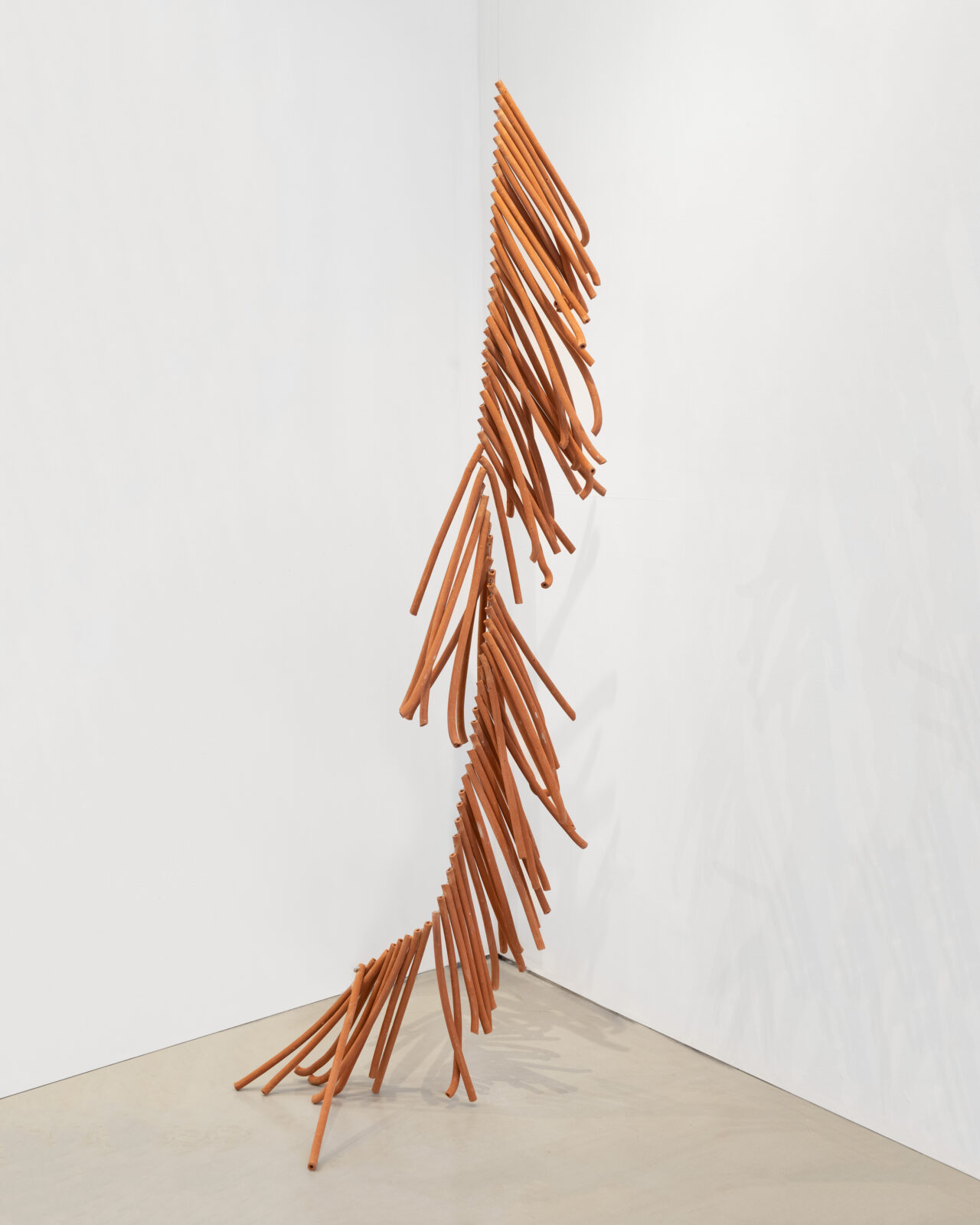 Luciano Gimenez makes a shape appear. He does so with the support of an instrument designed for extrusion. I discover that the word “extrude” comes from the Latin extrudĕre: “to push out” or “to throw violently outward.” I think that this action, of giving shape to a mass through an opening, can be considered the first act of the collection of works Luciano presents at Galería Cott. Although the principle may lie much further back, much further, I take this birth, that of a shape thrown outward, as the beginning of my story.