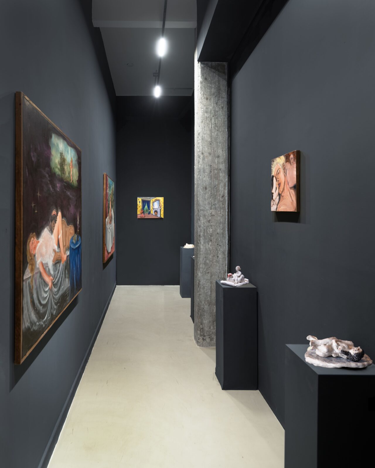 Fátima’s works, read as a narrative, could follow the times of love and heartbreak and generate more questions than certainties: expectation, imagination, swiping, isolation, the pleasure of one’s own time, falling in love and disappointment, sex and fury, care and subordination, sadness and overflow. In her paintings, binarisms and linear narratives explode; bodies and kisses mix, fragment, and recombine. Affects are translated into pictorial language. Blurred images imprint a dreamlike timbre that summons fantasy and memory (echoes of Chinese porcelain, sinking into a sofa, the distant closeness of an elevator).