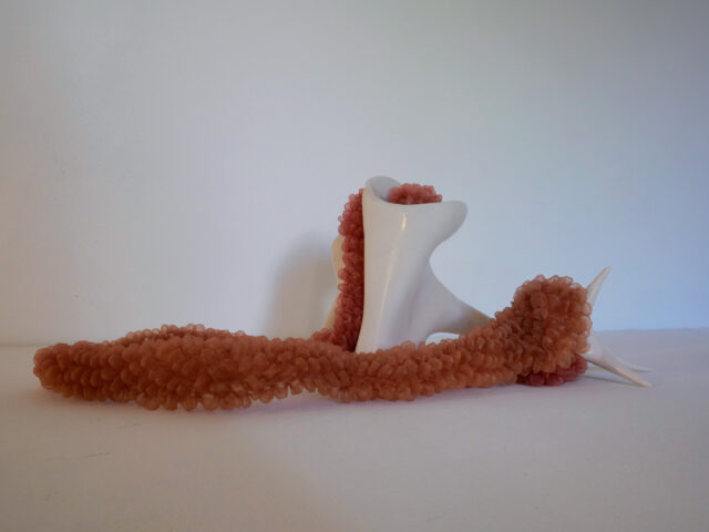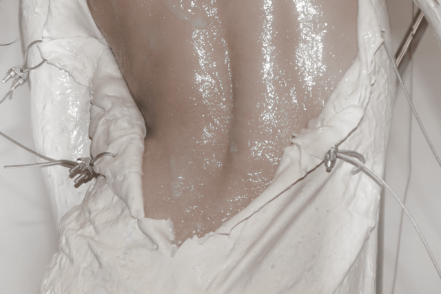 Helden’s images narrate an identity search that starts from disidentity through a move away from the binary categories female-male, natural-artificial and origin-destiny to immerse oneself in the virtue of indetermination. From the latex treatment she materializes new skins, fantasy corpses, and prostheses that allow her to transcend the limits of the flesh – the human with the sole purpose of being “being.”