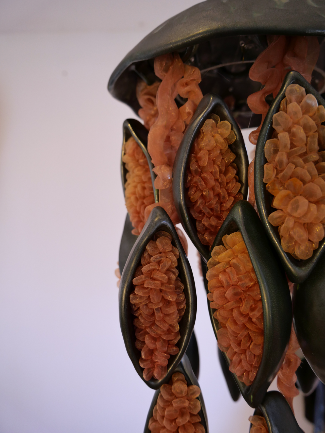 Sancineti’s pieces reflect the multiple transitional instances of entities that coexist in the room beyond their in-evolutionary stages marked by latencies, suspensions, germinations, voids, overflows and non-hierarchical links.
